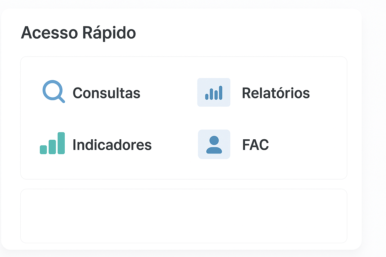 As ferramentas mais usadas estão a um clique: relatórios, consultas e gráficos acessíveis sem complicação.